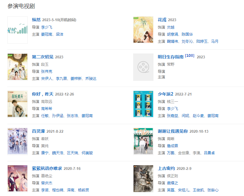 代表作品:少年派、惹上冷殿下、太子妃升职记、旋风少女第二季、白狐的人生