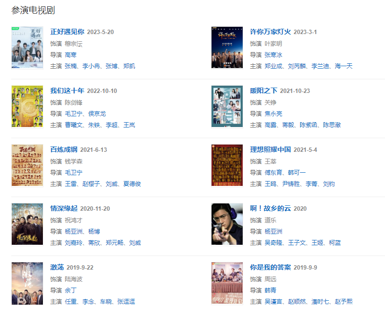 2016年参演电视剧《云巅之上》;主演杨亚洲导演的电视剧《嘿,孩子》和中国版《约会~恋爱究竟是什么呢~》。