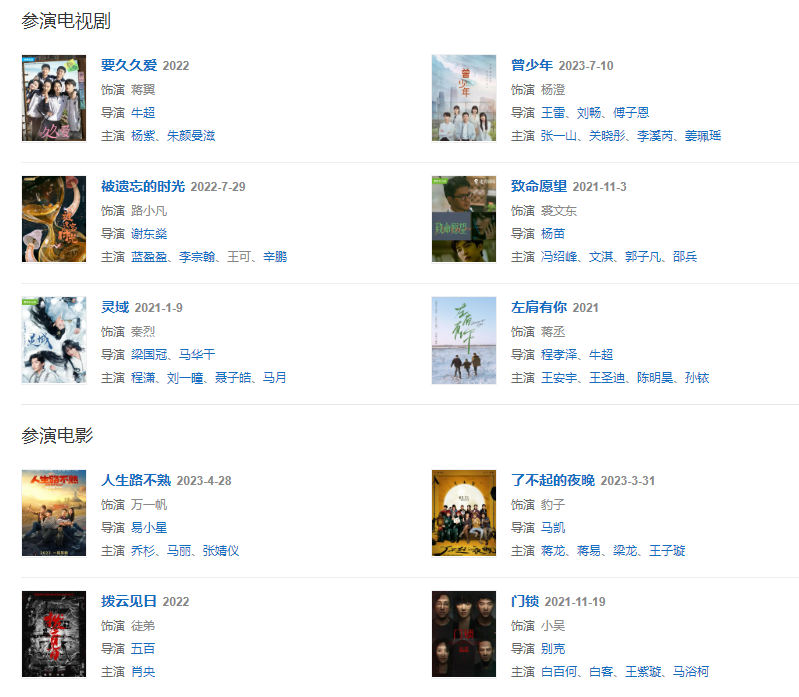 代表作品:偶像练习生、I'm Here、门锁、致命愿望、灵域
