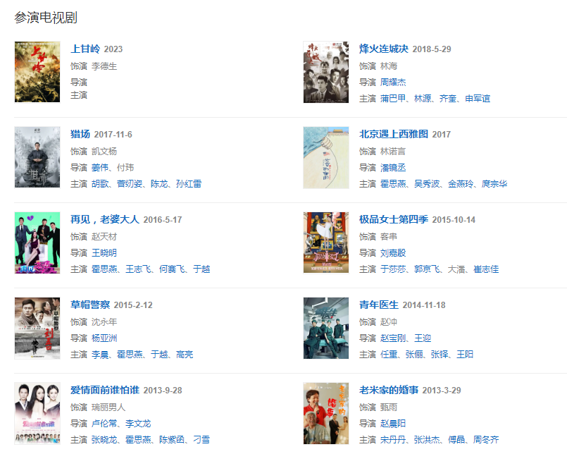 代表作品:红海行动、青年医生、罗曼蒂克消亡史、高跟鞋先生、北京遇上西雅图