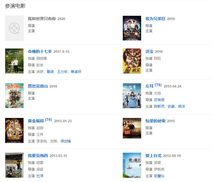 2014年8月在苏有朋导演电影处女作《左耳》中饰演“尤他”。