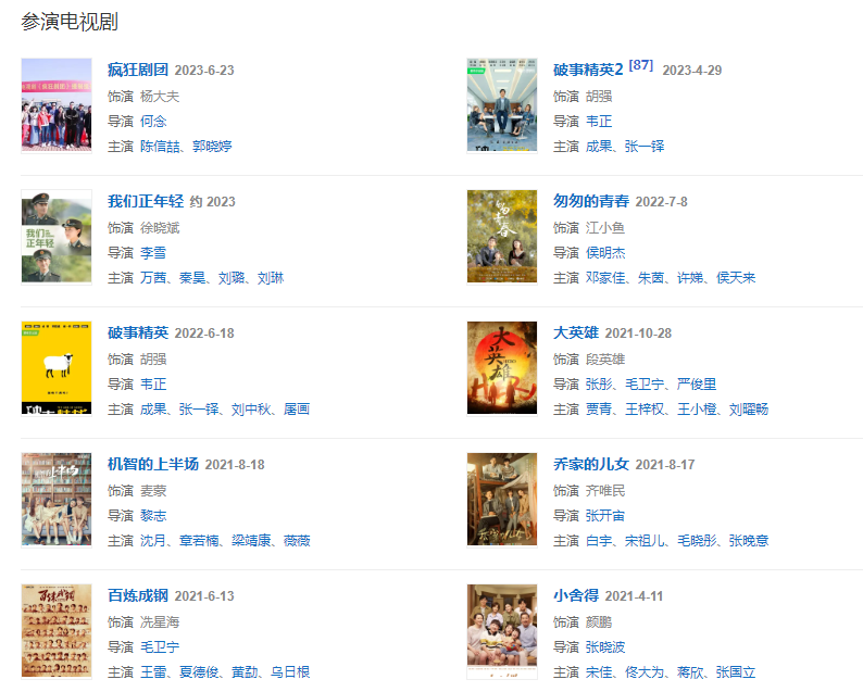 代表作品:爱情公寓Ⅱ、外科风云、我家有喜、新还珠格格、空天猎、新婚公寓