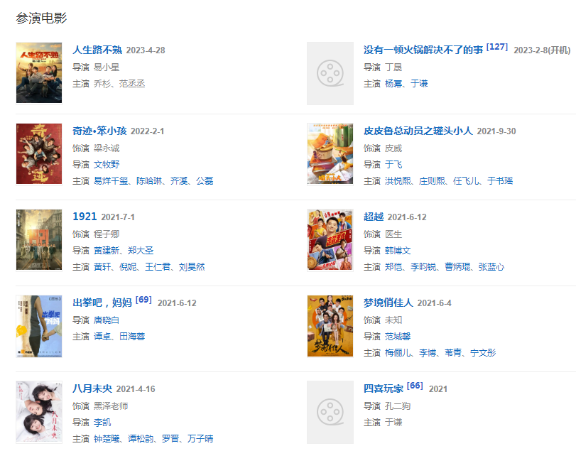 2021年5月20日,主演的电影《梦境俏佳人》定档 。出演由于飞导演的电影《皮皮鲁与鲁西西之罐头小人》。