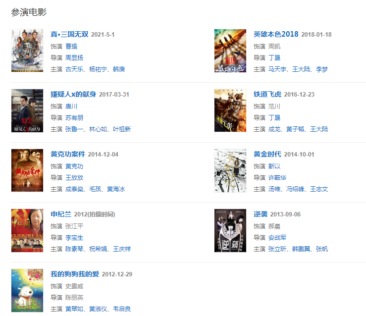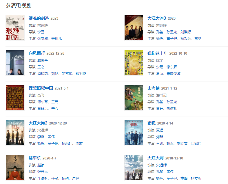 代表作品:大江大河、琅琊榜、伪装者、北平无战事、如果蜗牛有爱情、嫌疑人x的献身、清平乐、猎狐