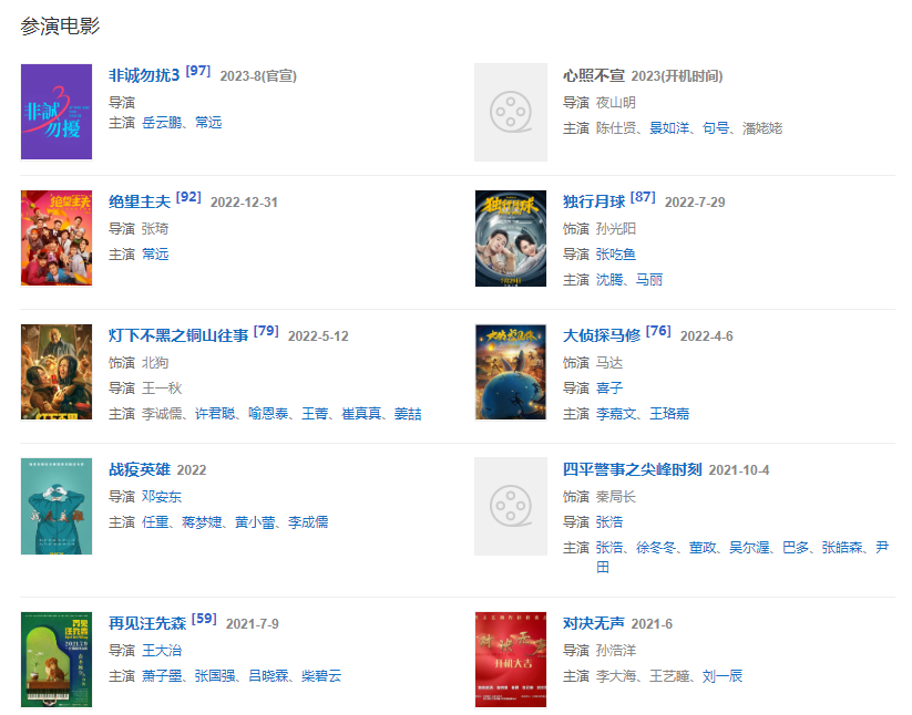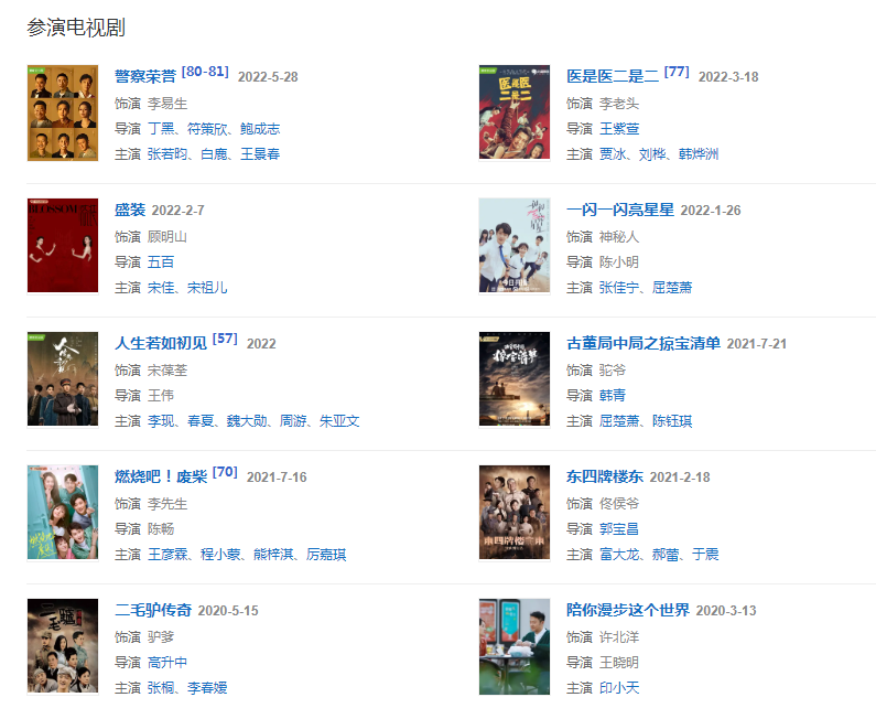 2022年,在丁黑导演执导的《警察荣誉》中饰演李大伟的父亲李易生。