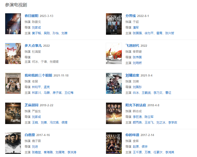 2017年,在年代剧《白鹿原》中饰演鹿子霖 ;