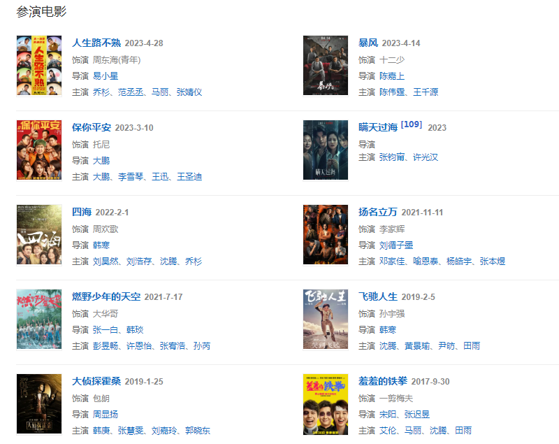 代表作品:麻雀、夏洛特烦恼、他来了,请闭眼、龙门镖局、鬓边不是海棠红、扬名立万