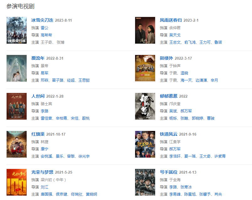 2020年9月4日,主演的军旅剧《蓝军出击》播出 12月13日,主演的检察剧《巡回检察组》播出。