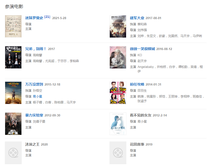 代表作品:报告老板、万万没想到、建军大业、微微一笑很倾城、高科技少女喵、扬名立万