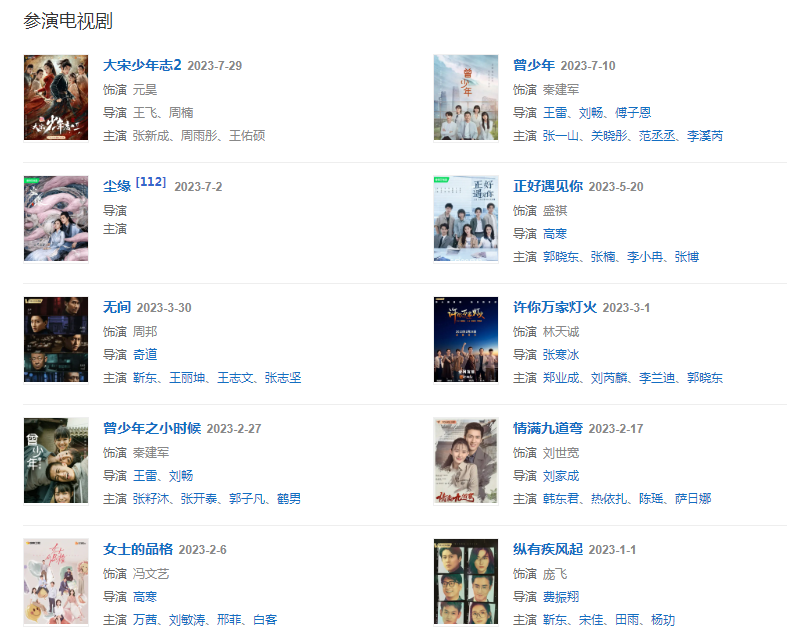 代表作品:西游记之大闹天宫、一半海水一半火焰、有你才幸福、工人大院