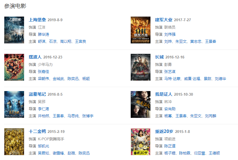 2016年,主演的电影《盗墓笔记》《长城》上映 。同年,登上“中国90后10大影响力人物”榜首,并以2.7亿财富居2016“中国90后富豪榜”第五位 。