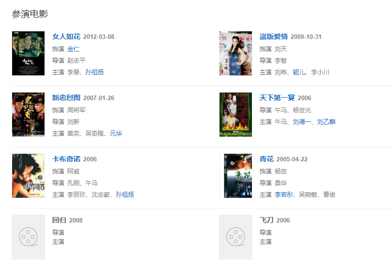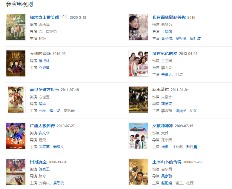 代表作品:青花、天仙配、盖世英雄方世玉