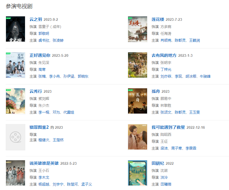 2020年4月,主演古装剧《雁归西窗月》 。10月,主演古装剧《嘉南传》 。