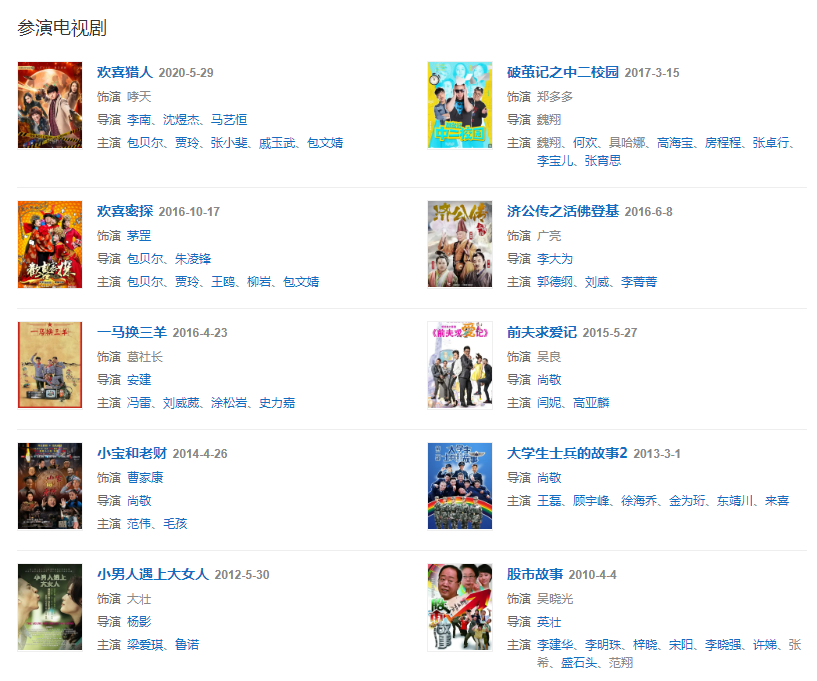 2016年在《济公传之活佛登基》中饰演广亮。同年以助演身份参加《欢乐喜剧人第二季》。