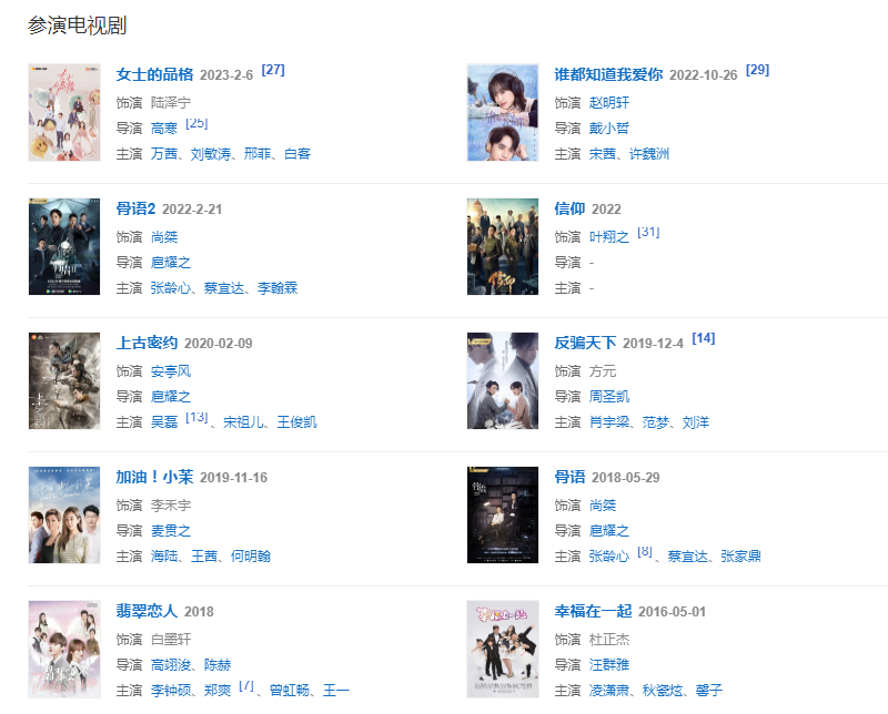 2023年2月,主演的电视剧《女士的品格》播出 。