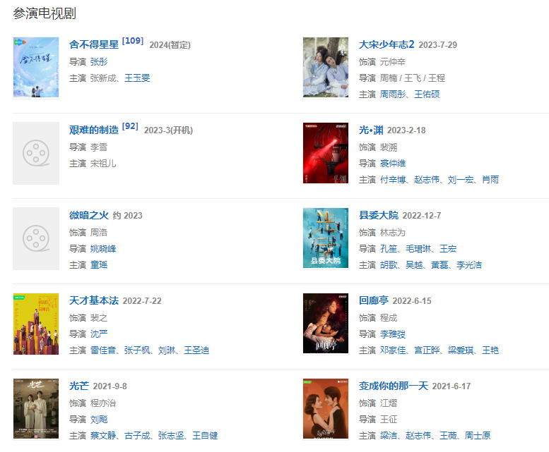代表作品:你好,旧时光、大宋少年志、冰糖炖雪梨、以家人之名、变成你的那一天