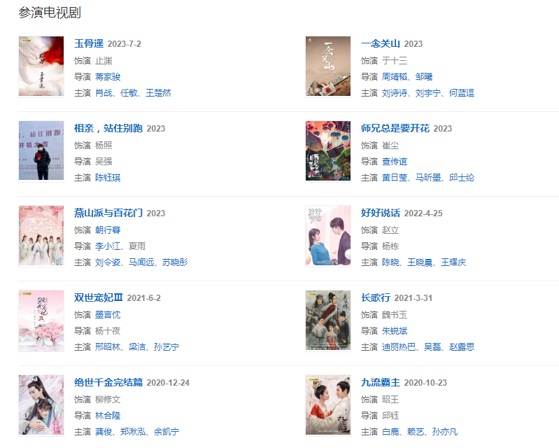 代表作品:明月照我心、绝世千金、许你浮生若梦、不一样的美男子、九流霸主、长歌行、玉骨遥
