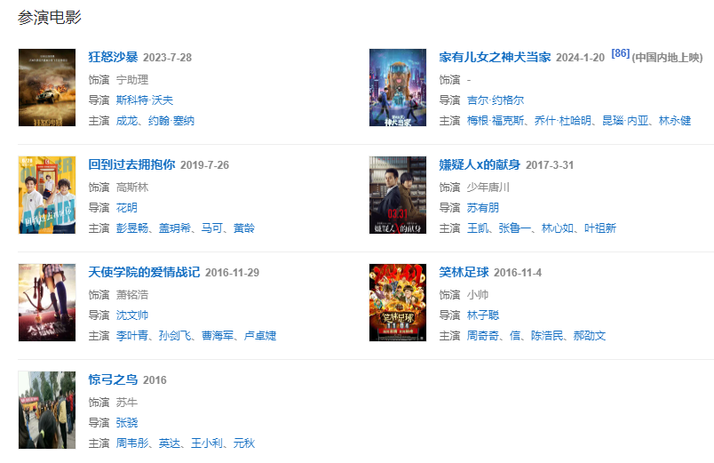 2015年,出演电影处女作《笑林足球》。