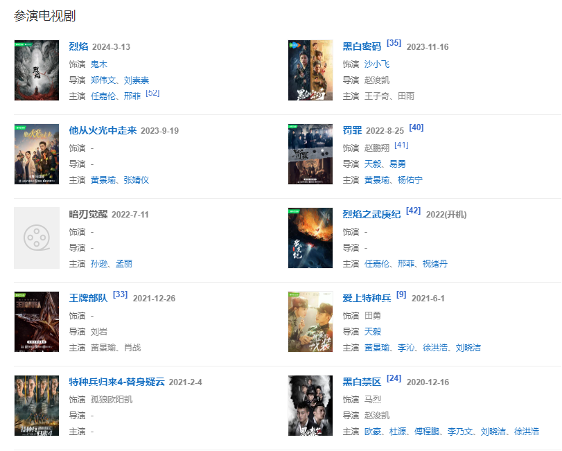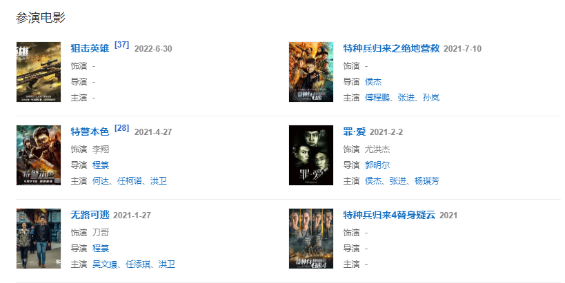 2010年开始相继参演刘猛执导的军旅剧《我是特种兵》、《我是特种兵之利刃出鞘》和《特种兵之火凤凰》,为观众所熟知。