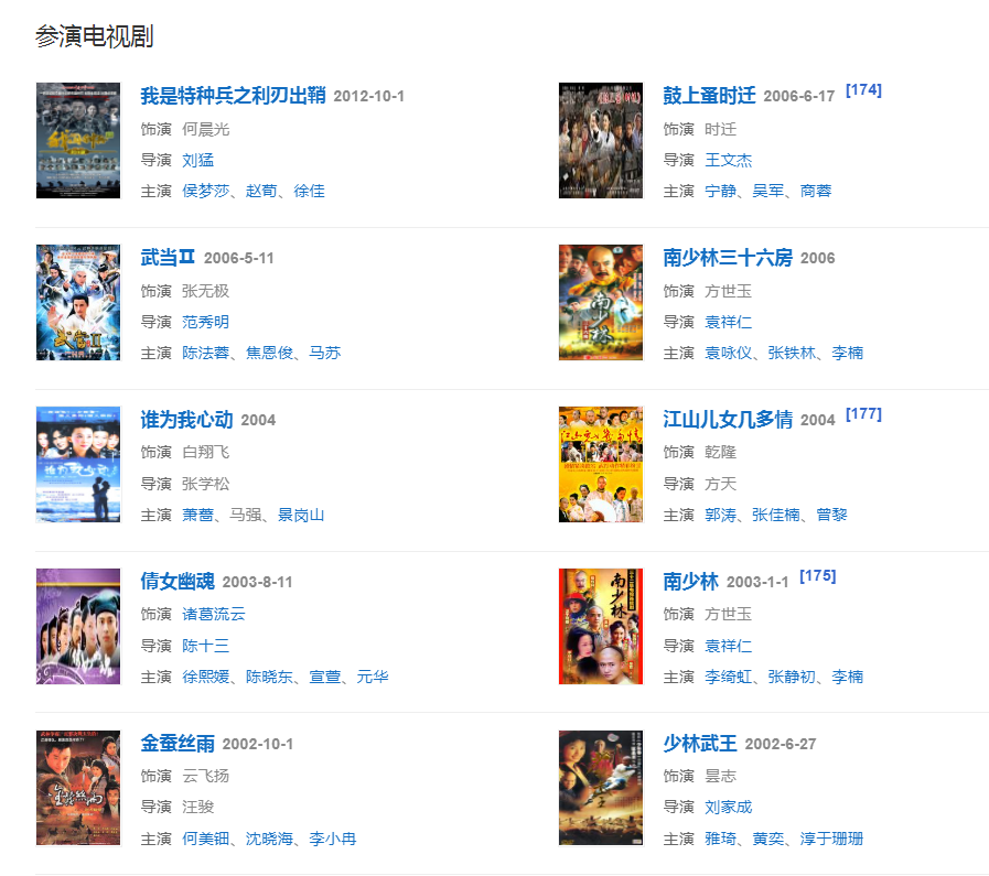 1999年主演武侠剧《小李飞刀》。