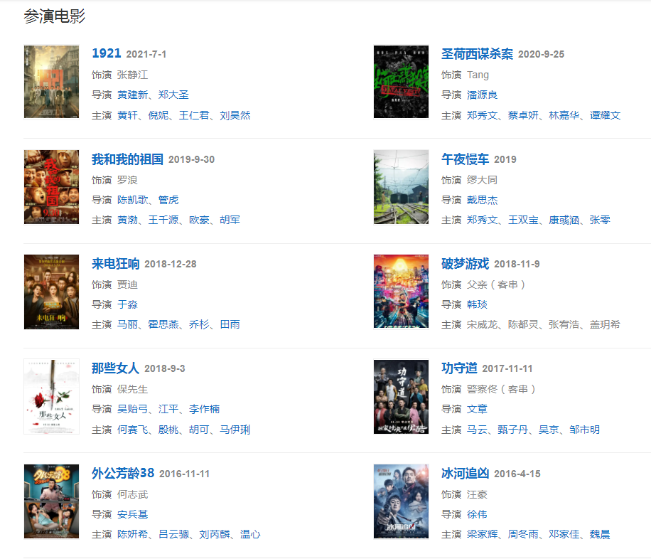 2014年主演都市话题喜剧《我的儿子是奇葩》;同年在电影《太平轮(上)》中饰演佟大庆。