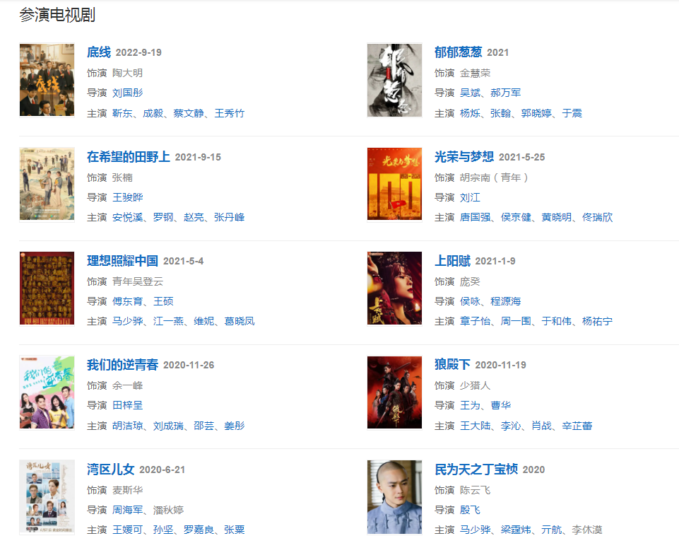 代表作品:宝莲灯、真命小和尚、莲花童子哪吒、九岁县太爷、遇见你真好、林海雪原、龙探、醉侠苏乞儿