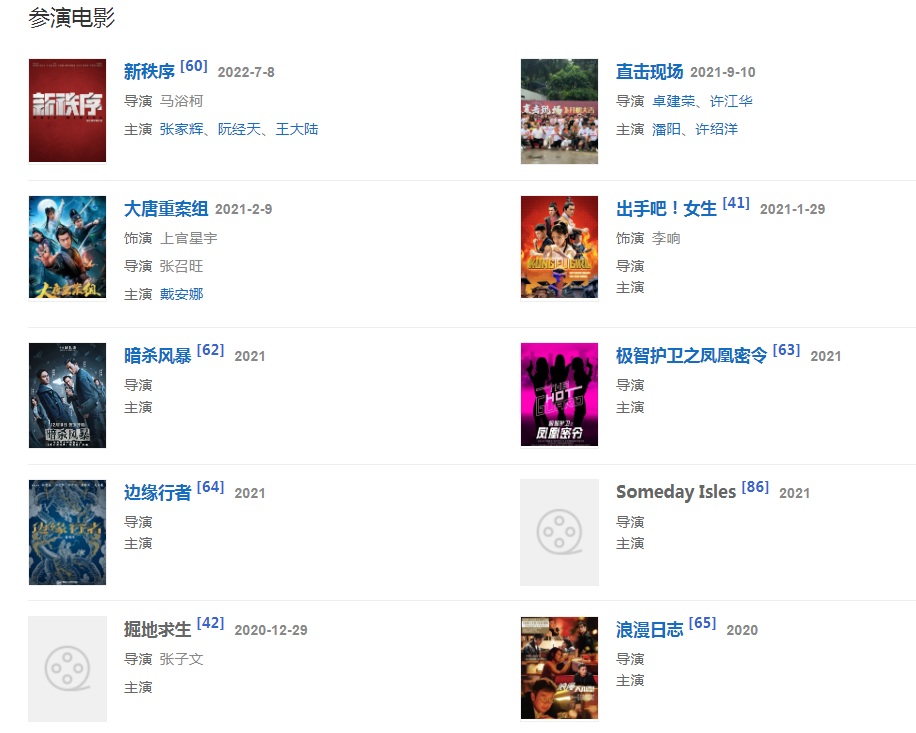 2022年4月15日,参演的犯罪动作电影《边缘行者》上映;7月8日,友情出演的犯罪动作电影《新秩序》上映 。