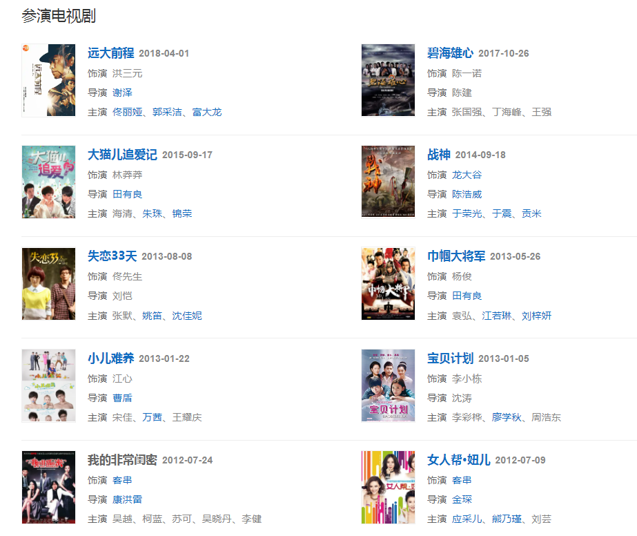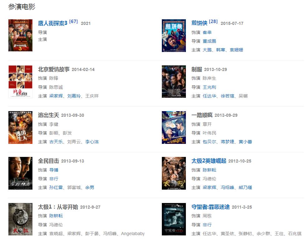 代表作品:北京爱情故事、唐人街探案系列、法官妈妈、春风沉醉的夜晚、士兵突击、战神、远大前程