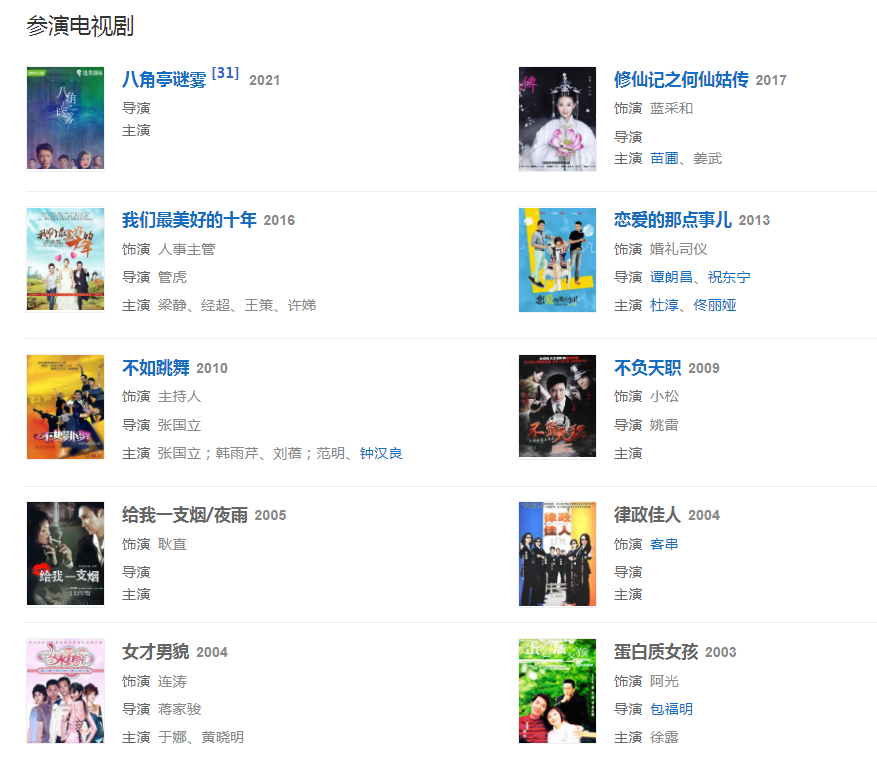 2021年1月,加盟湖南卫视喜剧类节目《百变大咖秀第六季》;参演电视剧《八角亭谜雾》。