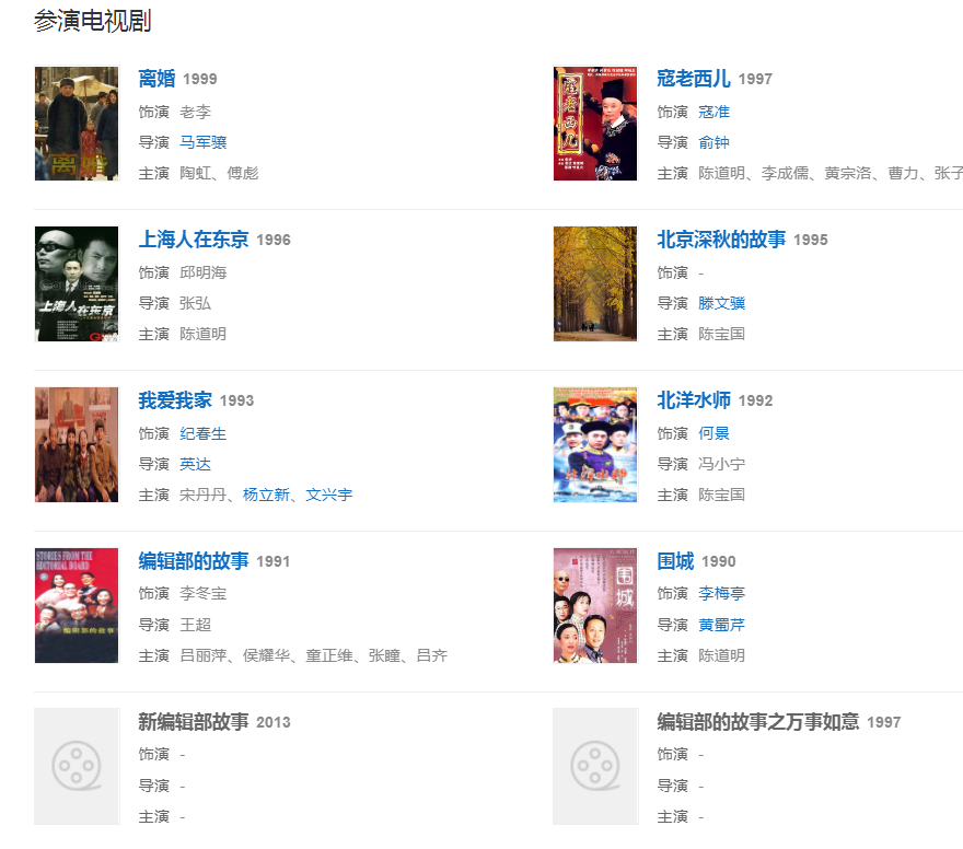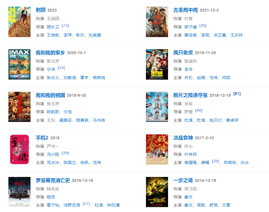 代表作品:编辑部的故事、活着、甲方乙方、不见不散、没完没了、大腕、手机、夜宴、非诚勿扰、让子弹飞