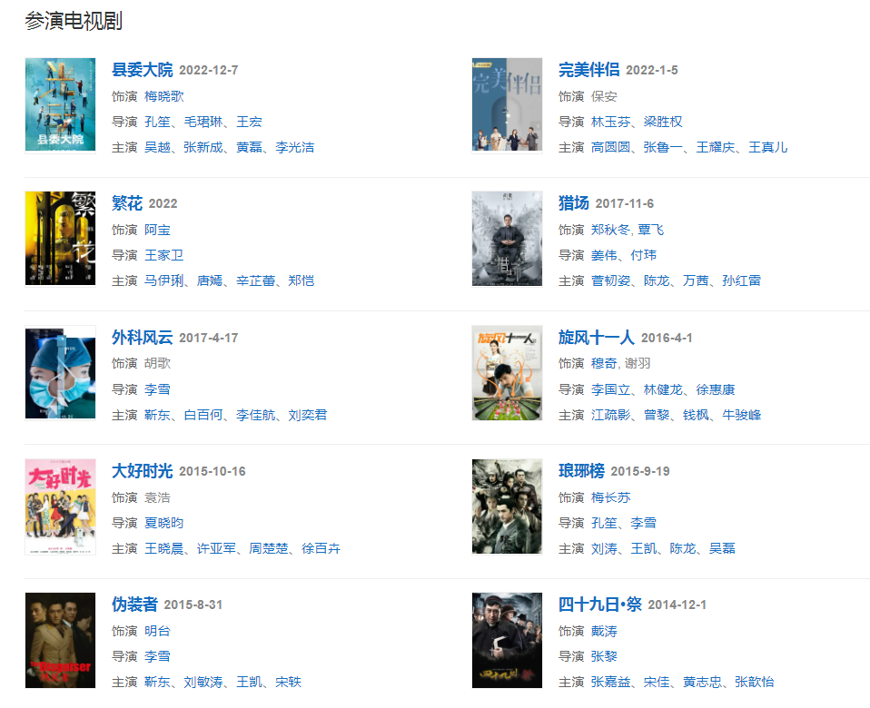 代表作品:仙剑奇侠传、琅琊榜、神话、伪装者、仙剑奇侠传三、南方车站的聚会、天外飞仙、轩辕剑之天之痕、猎场、大好时光、六月的雨、逍遥叹、天亮以后、忘记时间、一吻天荒、风起时、指纹、蓝光
