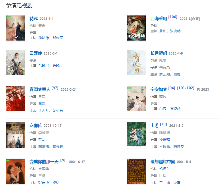 代表作品:西游记后传、武林外史、隋唐英雄传、新水浒传、王中王、萍踪侠影、开天辟地