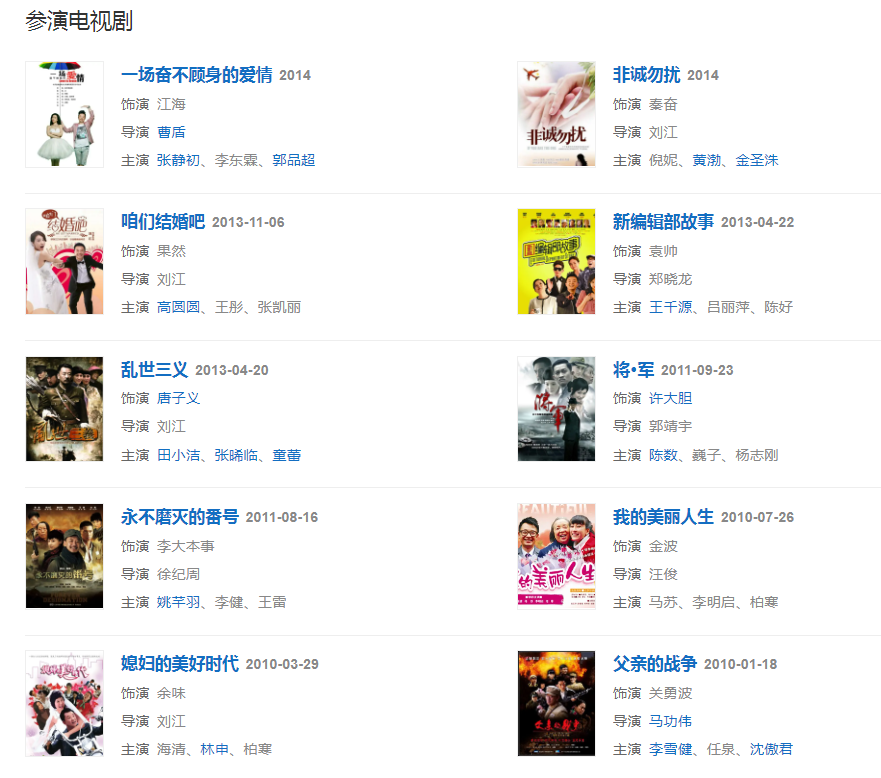 代表作品:咱们结婚吧、媳妇的美好时代、永不磨灭的番号、将军、新上海滩、新编辑部故事、乱世三义