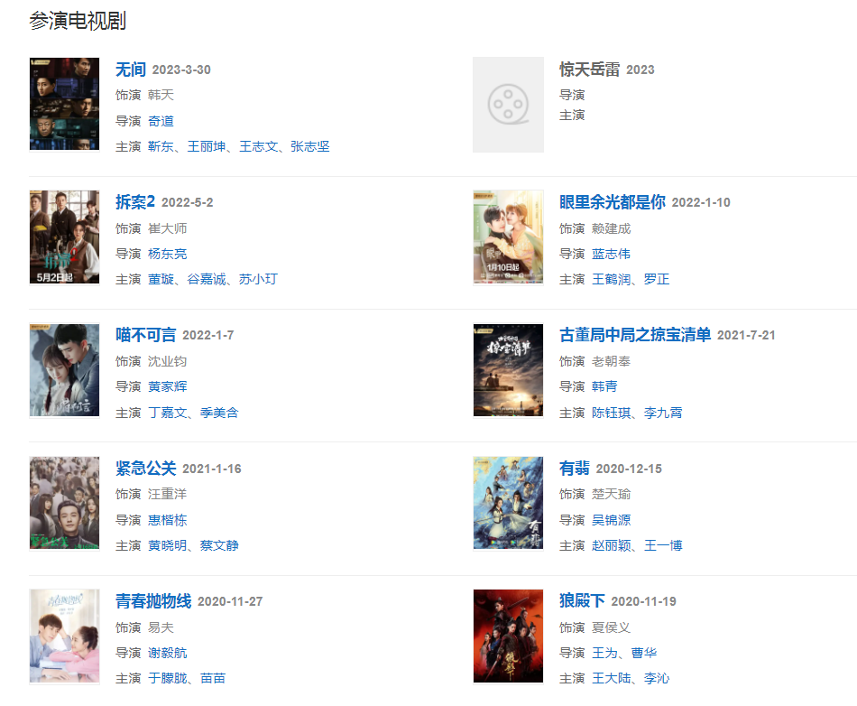 2022年1月7日,特别出演的奇幻甜宠网络剧《喵不可言》播出,在剧中饰演沈业钧;1月10日,特别出演的都市爱情偶像剧《眼里余光都是你》播出,在剧中饰演赖建成;5月2日,特别出演的民国悬疑探案剧《拆案2》播出,在剧中饰演崔大师。