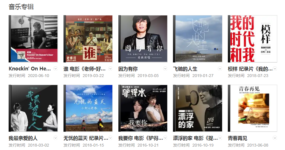 1996年,与北京太合麦田音乐文化发展有限公司合作出版《青春无悔》专辑2002年,发行第二张个人专辑《晴朗》。