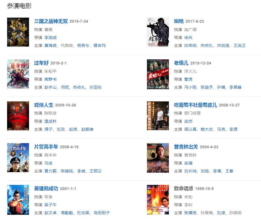2003年,主演反特剧《一双绣花鞋》以及古装剧《金剑雕翎》。