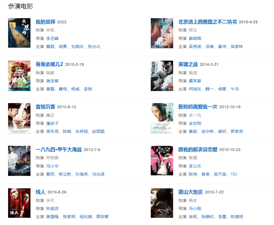 代表作品:永不瞑目、人民的名义、三国、男才女貌、长大、夜幕下的哈尔滨、苏东坡、假如生活欺骗了你