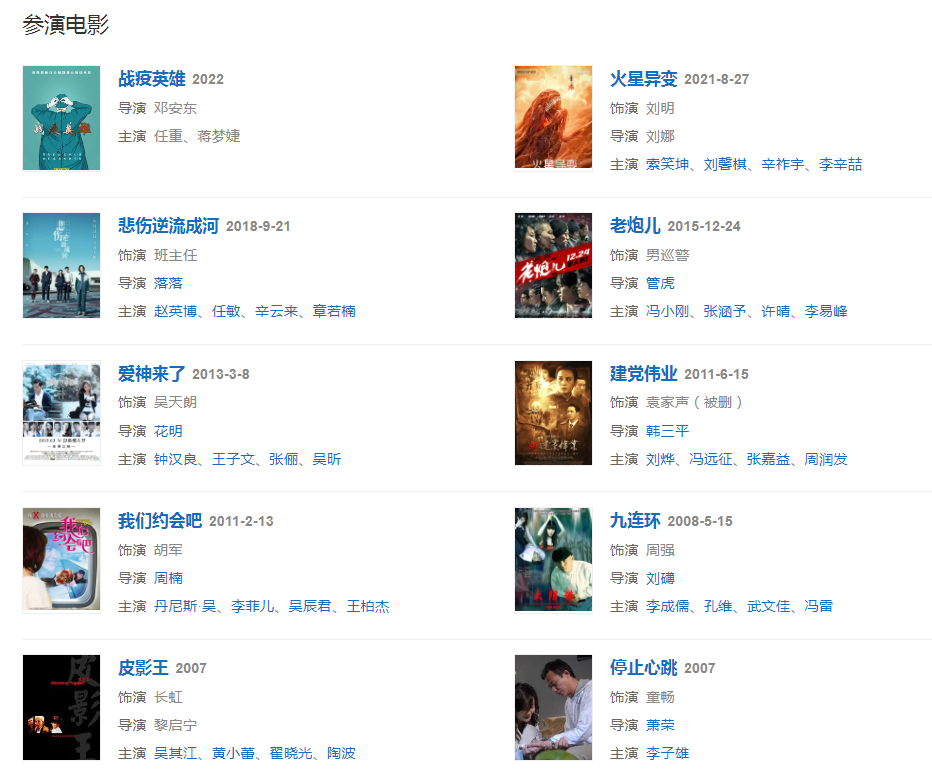 代表作品:青年医生、小爸妈、将婚姻进行到底、婚姻保卫战、家的N次方、北京青年、新恋爱时代、实习生
