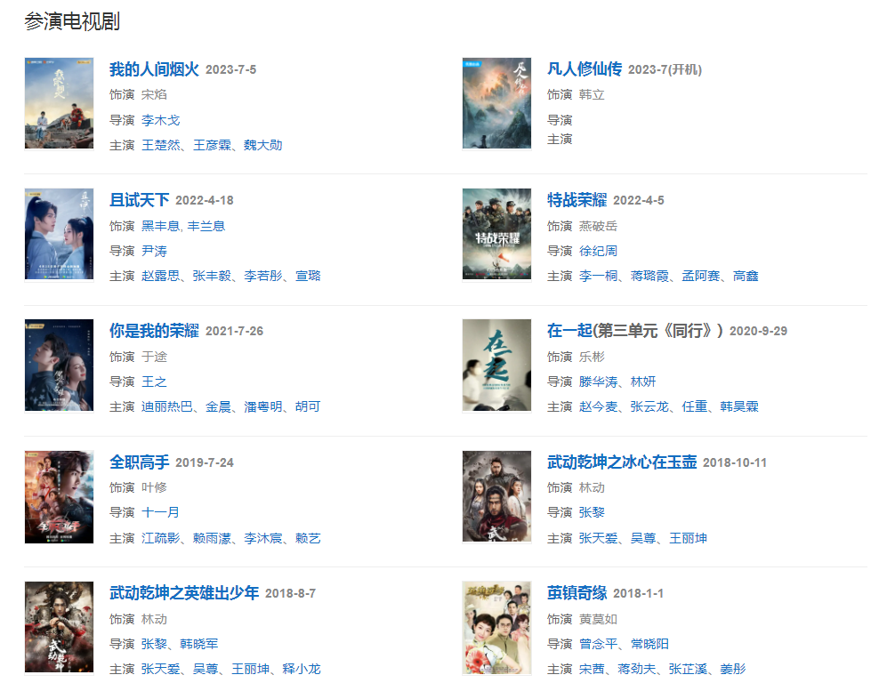 2022年4月5日,主演的军旅剧《特战荣耀》播出 ;4月18日,主演的古装武侠言情剧《且试天下》在腾讯视频播出 。
