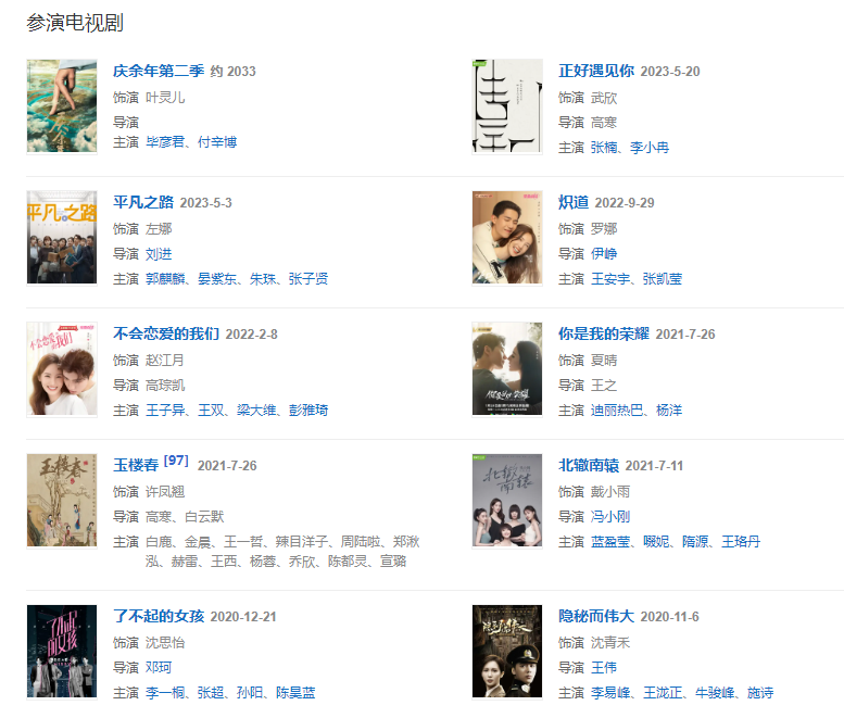 代表作品:萌妃驾到、无心法师、女医·明妃传、隐秘而伟大、了不起的女孩