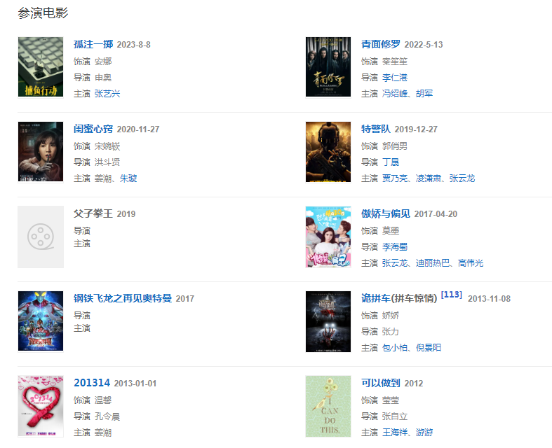 2013年,凭借惊悚悬疑片《拼车惊情》提名第16届上海国际电影节传媒大奖最佳新人女演员。