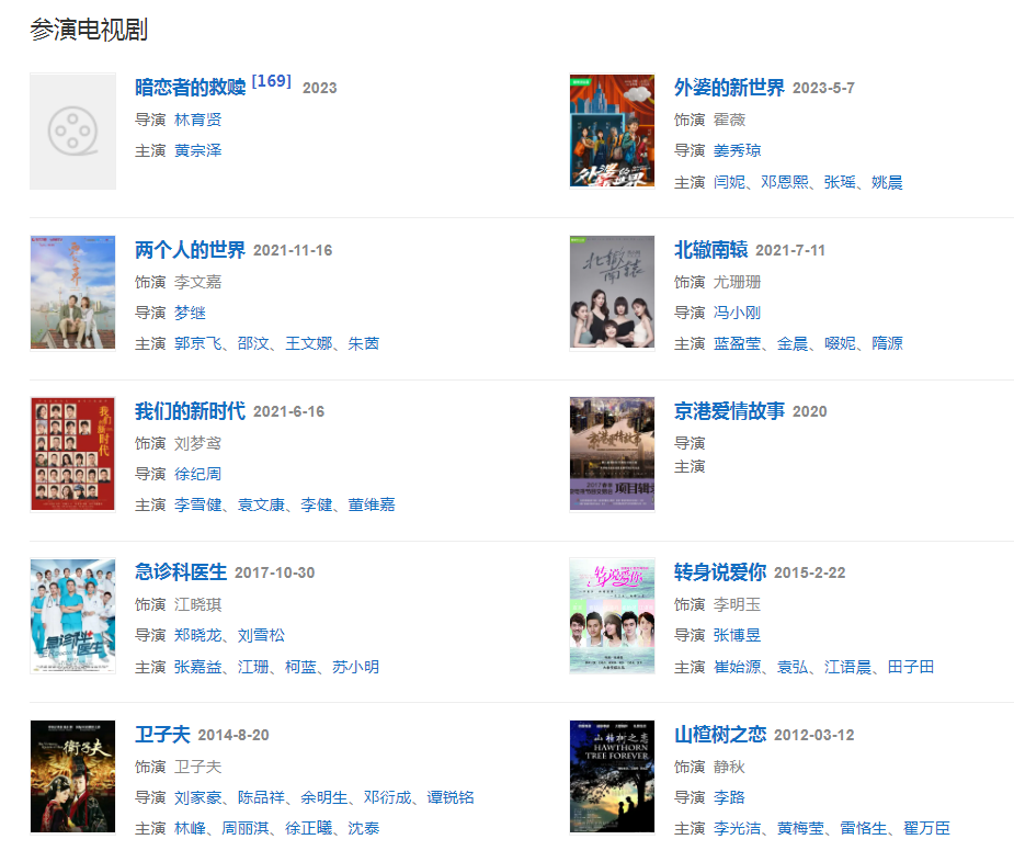 代表作品:奋斗、杜拉拉升职记、急诊科医生、卫子夫、我的青春谁做主、红娘子、无人驾驶、消失的爱人、暗香、两个人的上海