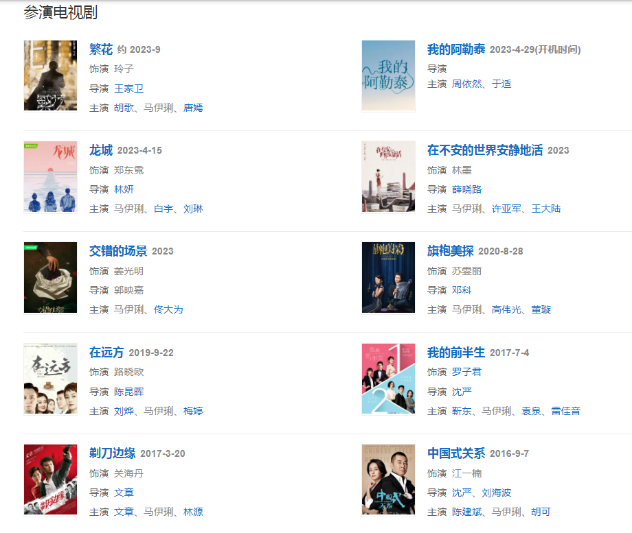 2023年3月3日,网剧《交错的场景》正式官宣由马伊琍等人领衔主演。4月15日,领衔主演电视剧《龙城》。