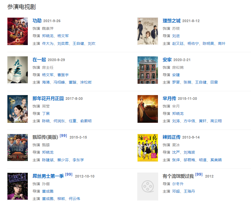 代表作品:甄嬛传、玉观音、幸福像花儿一样、那年花开月正圆、芈月传、新上海滩、辣妈正传、血色浪漫、画皮、影、霍元甲、爱如空气、小小的梦想、安家、理想之城、小姨多鹤、一米阳光
