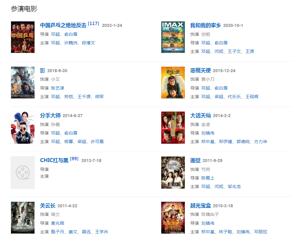 2015年主演古装剧《芈月传》和喜剧电影《恶棍天使》。