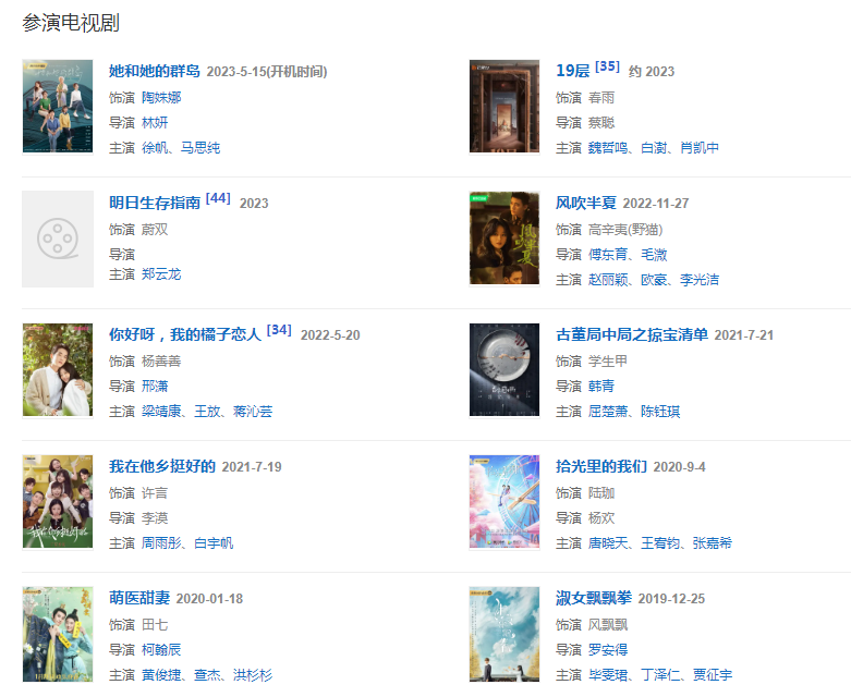 2020年,主演的古装言情喜剧《萌医甜妻》和都市青春言情剧《拾光里的我们》先后上线。