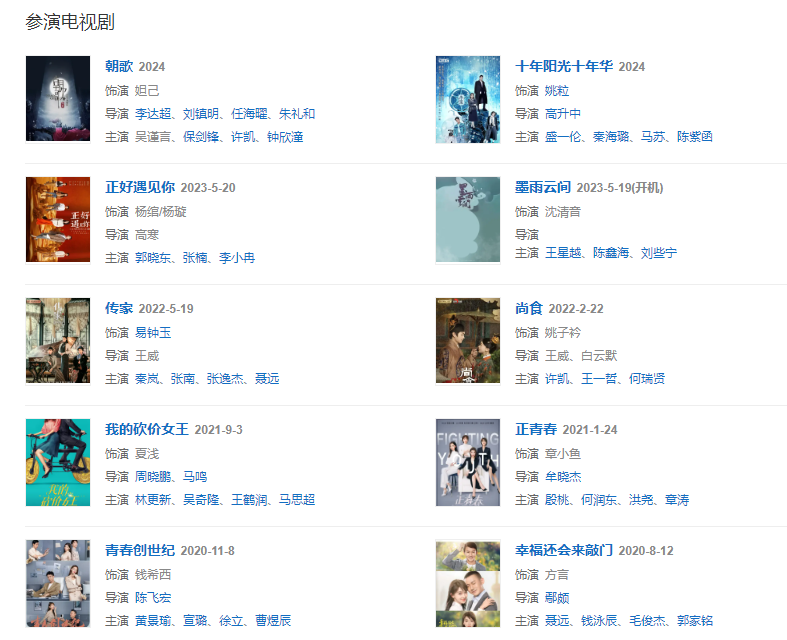 代表作品:延禧攻略、外滩钟声、皓镧传、青春创世纪、正青春、尚食、传家