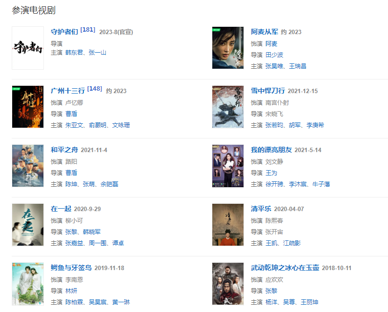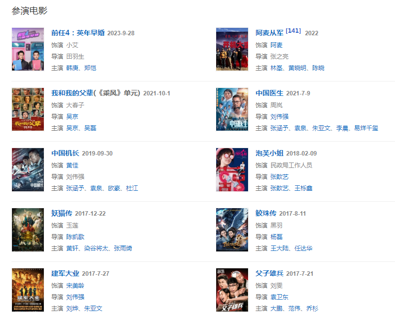 代表作品:太子妃升职记、爱情进化论、武动乾坤之英雄出少年、中国机长、从你的全世界路过、鲛珠传、建军大业、鳄鱼与牙签鸟