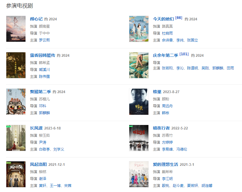 代表作品:伪装者、逆袭之星途璀璨、我们的荆轲、毛岸英、山楂树之恋、远的要命的爱情、创业时代、夏梦狂诗曲