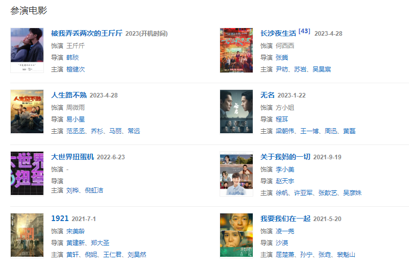 2023年1月22日,张婧仪主演的谍战电影《无名》上映;2月14日,主演的电影《被我弄丢两次的王斤斤》官宣 ;4月28日,主演的喜剧电影《人生路不熟》上映 ;同日,搭档尹昉主演的电影《长沙夜生活》在全国上映,在片中饰演何西西。